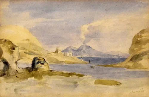 A füstölgő Vezúv a távolban