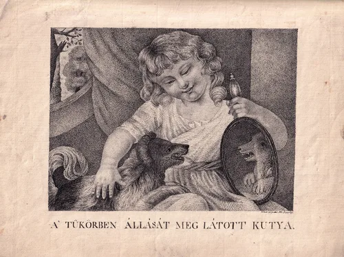 f. l. k.: „A’ TÜKÖRBEN ÁLLÁSÁT MEG LÁTOTT KUTYA.”