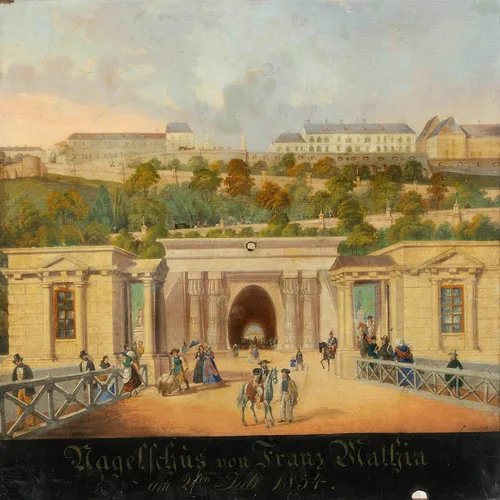 E céltábla a Pesti Lövészegyletnek készül, az alagút ,,reklámozása" érdekében. Megfestése rangos feladat, több akadémiai művész is készített ilyet. A lövőtábla megörökítette az egyes lövéseket, és mint ilyen, emlékállításra és díszítésre szolgált. A lövészegyletek voltak a város polgárainak lövészeti-gyakorlóhelyei, minden társadalmi rétegből egyaránt, így működésük a civil kultúra terjedését, a társadalmi kiegyenlítődést segítette elő.