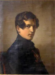 Széken ülő, tizenhét-tizennyolc évesnek látszó, szembenéző ifjú, hullámos sötétbarna hajjal. Szürkésbarna háttér. (Műtárgyfigyelő szövege.)