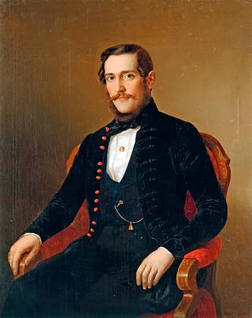 Férfiportré, piros gombos mentével