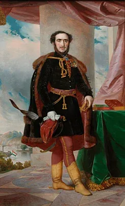 A 30-as években országos igény támadt Széchenyi portréjának kiakasztására a vármegyeházákban. Ugyanekkor a pesti lapok művészeti rovataiban gyakran olvasható, hogy egy ideje rangos megrendelők keresnek egy olyan magyar festőt, aki képes kvalitásos portrét készíteni. A keresők közt első volt Széchenyi – aki már nem akart a hivatalos megbízásokra idegent felkérni, mint korábban. Így az ifjú BM 1835 novemberében Bécsből a legjobbkor érkezett Pestre, miután megkapta a nagy politikustól művészettörténeti jelentőségű megbízatását egészalakos képmására. E munka adott reményt és bíztatást BM-nak a magyar fővárosban való megmaradásra. Széchenyi levélben hívta fel a vármegyék figyelmét a tehetségesnek ítélt magyar nemesre, mint akadémiai festőre, és ezek után az 1836-os év hihetetlen sikert – anyagiakban is – hozott a fiatal művész számára. (A levél teljes szövege: Barabás 1944: 138, 139.) Széchenyi megbízása óriási reklámértékkel bírt BM számára, mivel a portrét a vármegyék dísztermeiben akasztották ki, ahol a nagygyűléseken minden nemes megjelenhetett. A vármegyék országszerte gyűjtéseket indítottak a nagy politikus arcképének elkészíttetése érdekében, és tudósították egymást annak eredményéről, ami a festőnek nagyszerű reklám volt. Széchenyi ajánlására más törvényhatóságok is jelentkeztek ugyanekkor, (lásd Jgyk 269, 293; 299) és az elkövetkező évtizedekben, így BM – úgymond – a nemzet hivatalos festője lett, nemsokára így is emlegetik. Elsőnek természet után egy remekbeszabott derékkép készült Széchenyiről, majd az egészalakos képmás, amelyen kisebb – modernizáló – változtatások láthatóak, pl. a kesztyűs jobb kéz tollas kalpagját és kesztyűjét tartja, ez a gesztus majd néhány művén ismétlődik. A nagyszabású alkotás a politikai reprezentáció iskolapéldája. Széchenyi egy meghatározatlan nyitott térben, egy monumentális oszlop és bordó nehéz selyem drapéria mellett áll, háta mögött felhős kék ég, lent a Duna látszik, rajta gőzhajóval, amelyen élénken megrajzolva nemzeti színű zászló. A láthatáron a Budai várhegy. Jellegzetes fekete dolmányt és ,,panyókára vetve" óriási szőrmés mentét visel, mint a liberális magyar arisztokrácia díszruháját. Mellén orosz, porosz francia, eddig kapott kitüntetései.
