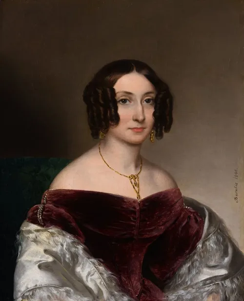 Hölgyportré vörös bársony ruhában