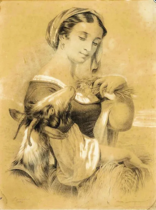 A rajz másolat C. Kallaud szénrajza (1843) után. BM a klasszicista arcformálást követi, míg az eredeti rajz modernebb, termésetesebb.