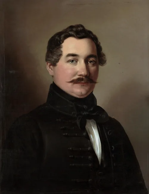 Ügyvédnek tanult, ám a régészet és a numizmatika érdekelte, és ebben képezte magát tovább. 1846-tól a Nemzeti Múzeum régiségtárának őre volt, ő rendezte az éremgyűjteményt. Részt vett a székesfehérvári királysírok feltárásában, nevéhez fűződik III. Béla és felesége sírjának feltalálása. Az 53 éves férfi BM arcképén mint a kor magyar értelmiségi ideáltípusa jelenik meg. Síma, pirospozsgás arca, szépen fésült haja, kackiás bajusza kiegészülve a fekete selyem nyakkendővel, a fekete dolmánnyal jókülsejű, jóegészségű magyar úrnak mutatja. A kép ecsetkezelése porcelánsímaságú, de nem elnyúzott. Hogy a portré látványának mennyi köze van a valósághoz, az kérdéses, de az ábrázolt talán örült ideális megjelenésének.