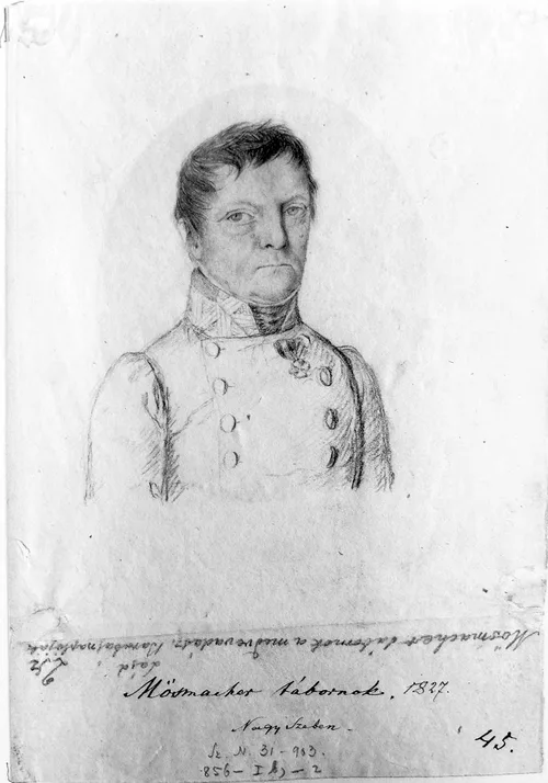 f. l. k.: „Mösmacher tábornok.1827. / Nagy Szeben”; l. k. fejjel lefelé: „Mösmacher tábornok a medvevadász”; l. j.: ,,45."