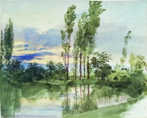 Barabás Miklós kevés hazai tájképei között is ritka mű, feltehetőleg egyik Erdélybe való utazása adott alkalmat készítésére. A megadott datálás nyilván téves, mert 1836-ban nem utazott, 1838-ban viszont igen. Az akvarell különös érdekessége hogy a Velencében kialakult könnyed, angolos akvarell-stílus egy alföldi tájrészleten jelenik meg, a tükröződés sejtelmes érzékeltése a lap kifejezett értéke.