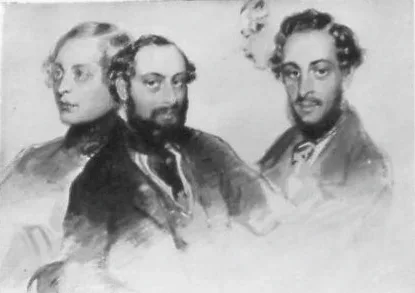 Balra szőke, kékszemű fiatal férfi háromnegyed profilban, előtte feketehajú, körszakállas, bajuszos, barnaszemű, feketekabátos, szembetekintő férfi jobb háromnegyed profilban. Jobbra feketehajú, barnaszemű, szembetekintő férfi bal háromnegyed profilban, mögötte balprofilban férfifej-tanulmány. Műtárgyfelügyelet