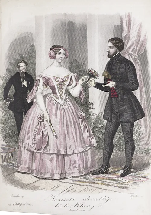 f. l. k.: „Nemzeti Divatkép / közli Klaszy V. / barátok terén”; b.: „az Életképekhez”/1847