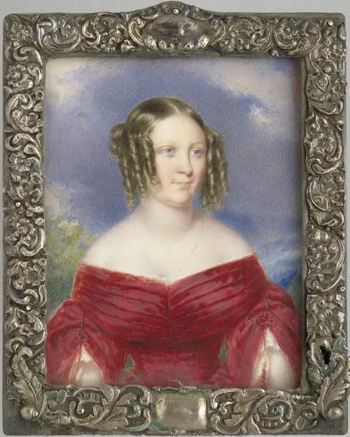akvarell, bársony, elefántcsont, ezüstlemez, ezüst keret, 129 × 103 mm