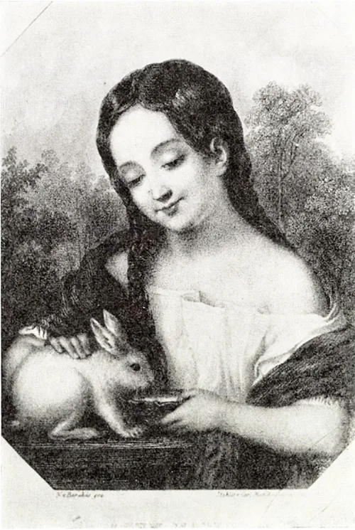863. Heckenástnak mettszés végett egy kis leánykát, ki egy házi nyulacskának enni ád t. r. 8 arany