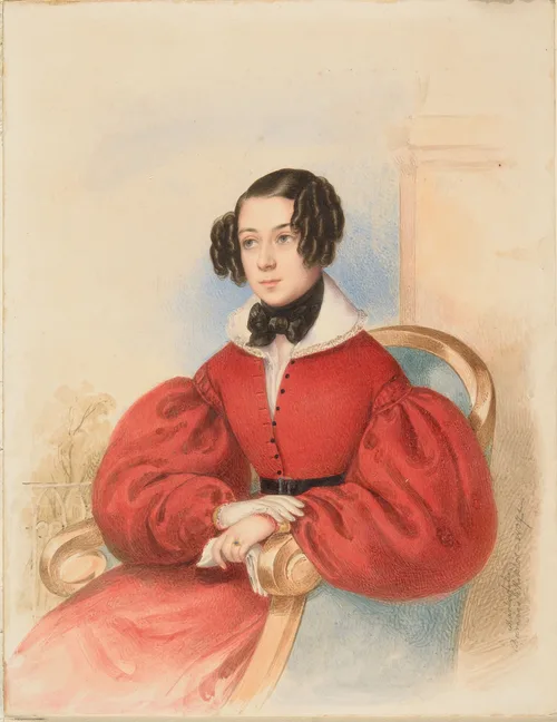 A festményről Hoffmann Edith így ír: „...egy férfias jellemű, regényes életű hölgy arcképe következett, Panker Viktóriáé, aki tevékeny részt vett a szabadságharcban s a hagyomány szerint mint hadnagy a kápolnai ütközetben is jelen volt. Vörösruhás képe a Szépművészeti Múzeum egyik legszebb aquarellje.” Hoffmann 1950: 28.
