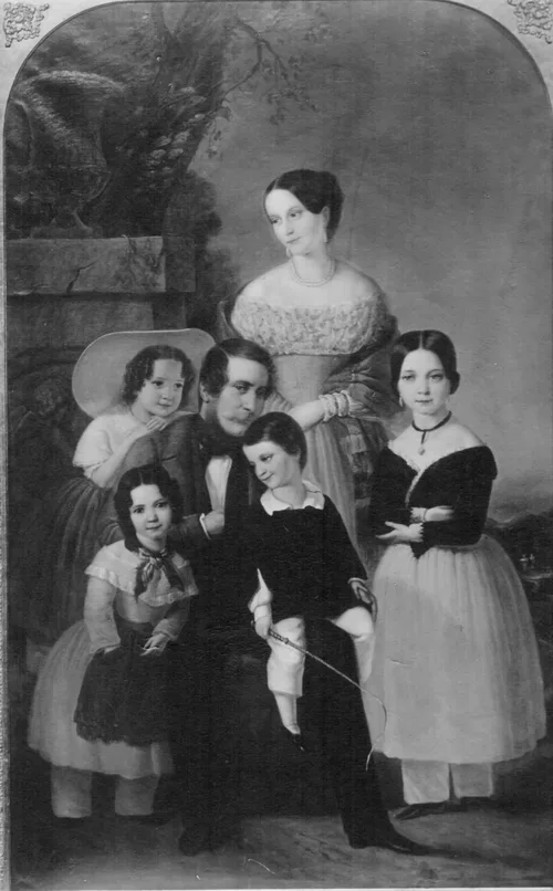 A festményről a későbbi években fotó készült, ezt a fotót közöljük. A fotográfus: Wukow Const. / fényképész Törökbecse. Feleség: Dohnal Katharina, gyermekeik: Regina, Makk Józsefné; Gizella, Keppel Knight John; Berta, dapsai Dapsy Béláné; Eduard; Leona, Tóth Elekné. A csoportkép háromszög-kompozícióján minden arc másfelé néz, a fényviszonyok egyediek, mindenki külön él. Tömegüket kissé elnyojma a háttér kő-eleme. A szereplők a Barabás Miklós-tól megsokottan bájosak.