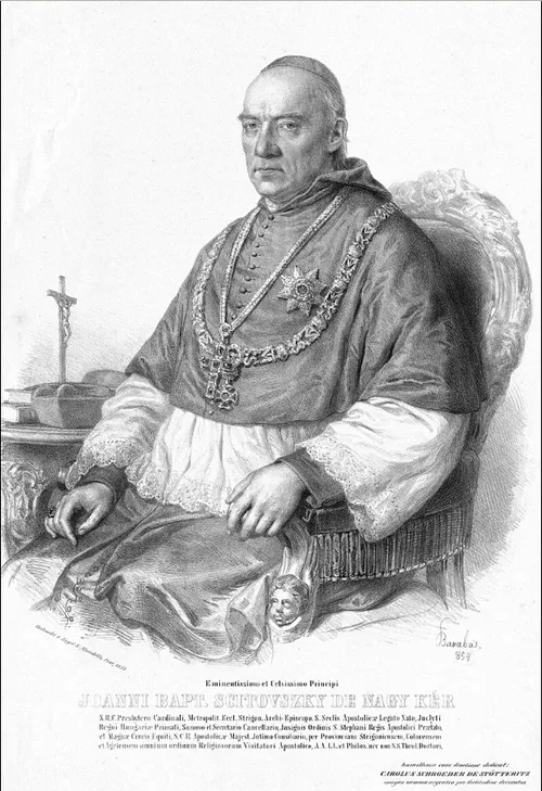 f. l. k.: „Eminentissimo et Celsissimo Principi / JOANNI BAPT. SCITOVSZKY DE NAGY KÉR / S.R.C. Presbvtero Cardinali, Metropolit. Eccl. Strigon. Archi- Episcopo. S. Seclis Apostolieae Legato Nato, Juclyti / Regni HungariaePrimati, Summo et Secretario Cancellario, Jusignis Ordinis S. Stephani Regis Apostolici Praelato, / et Magnae Crucis Equiti, S.C.R. Apostolicae Majest. Jutimo Consiliario, per Provinciam Strigoniensem, Colocensem / et Agrieusem omnium ordinum Religiosorum Visitatori Apostolico, A.A.L.L. et Philos. nec non S.S. Theol. Doctori / humillima cum devotione dedicat: / CAROLUS SCHROEDER DESTÖTTERITZ / magno nummo agenteo pro fortitudine decoratus.”