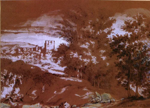 lavírozott tusrajz, tempera, színes papír, 215 × 297 mm