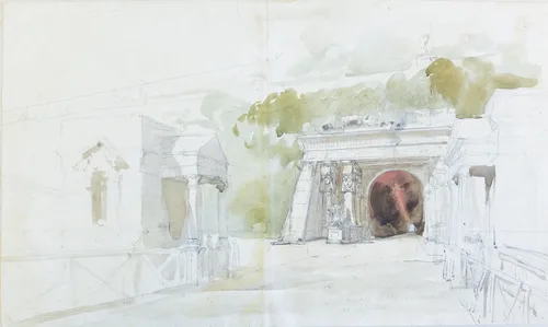 ceruza, akvarell, papír, 279 × 475 mm
